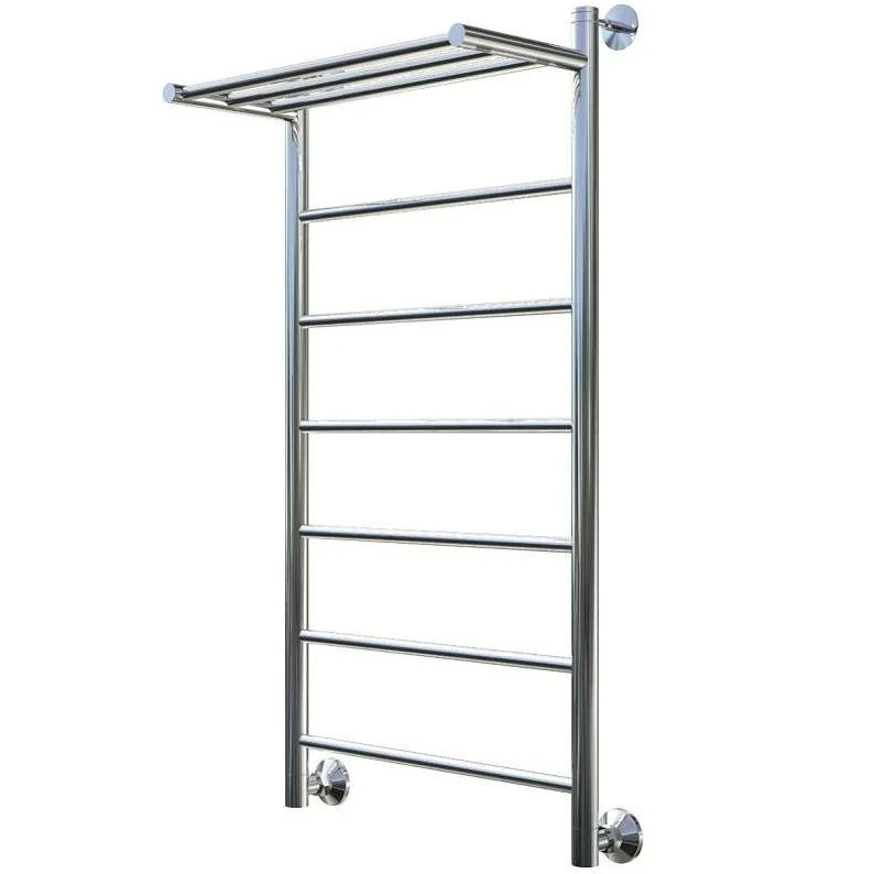 Водяной полотенцесушитель Тругор Аспект 1 П НП 100x50 см с полкой, цвет хром. Используется для просушки влажных вещей и полотенец, а также дополнительного обогрева помещения. Изготовлен из пищевой нержавеющей трубы марки AISI 304, которая отличается стойкостью к высоким температурам и образованию коррозии, выдерживает значительные перепады давления.