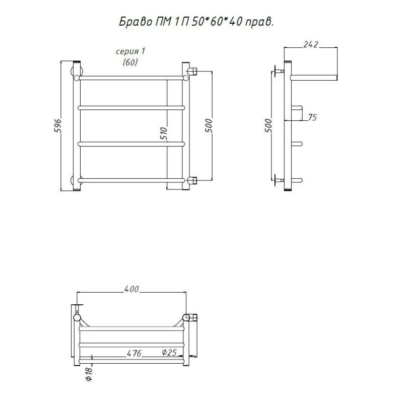Водяной полотенцесушитель Тругор Браво 1 П ПМ 60x40 см с полкой, цвет хром. Используется для просушки влажных вещей и полотенец, а также дополнительного обогрева помещения. Изготовлен из пищевой нержавеющей трубы марки AISI 304, которая отличается стойкостью к высоким температурам и образованию коррозии, выдерживает значительные перепады давления.
