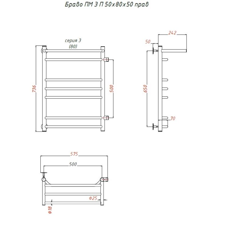 Водяной полотенцесушитель Тругор Браво 3 П ПМ 80x50 см с полкой, цвет хром. Используется для просушки влажных вещей и полотенец, а также дополнительного обогрева помещения. Изготовлен из пищевой нержавеющей трубы марки AISI 304, которая отличается стойкостью к высоким температурам и образованию коррозии, выдерживает значительные перепады давления.