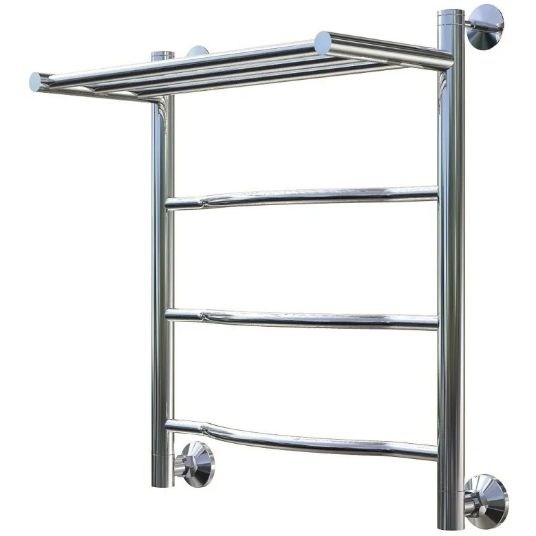 Водяной полотенцесушитель Тругор Лотос 1 П НП 60x50 см с полкой, цвет хром. Используется для просушки влажных вещей и полотенец, а также дополнительного обогрева помещения. Изготовлен из пищевой нержавеющей трубы марки AISI 304, которая отличается стойкостью к высоким температурам и образованию коррозии, выдерживает значительные перепады давления.