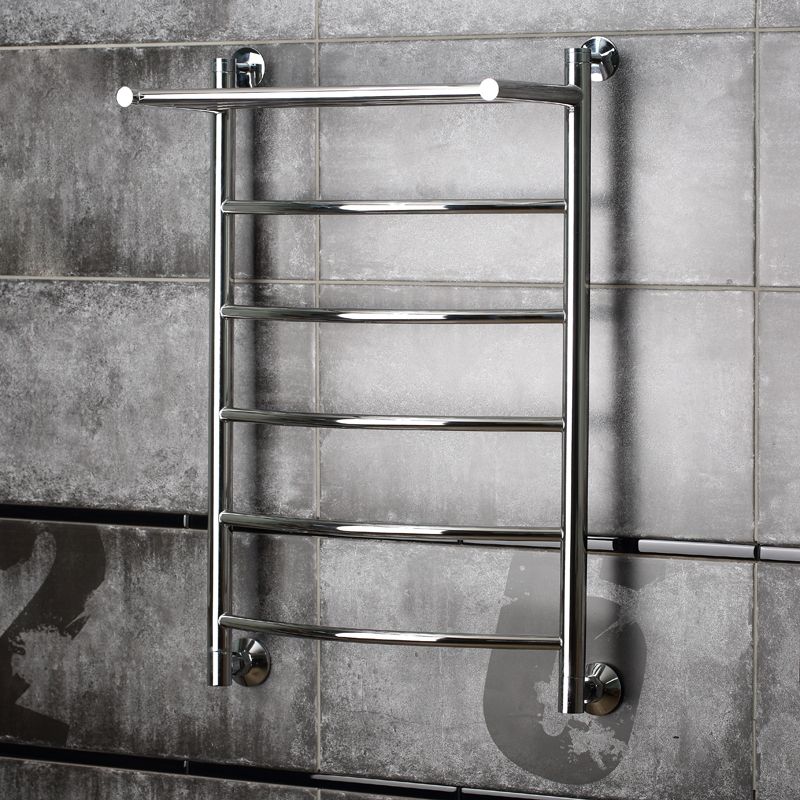 Водяной полотенцесушитель Тругор Приоритет 1 П НП 80x60 см с полкой, цвет хром. Используется для просушки влажных вещей и полотенец, а также дополнительного обогрева помещения. Изготовлен из пищевой нержавеющей трубы марки AISI 304, которая отличается стойкостью к высоким температурам и образованию коррозии, выдерживает значительные перепады давления.