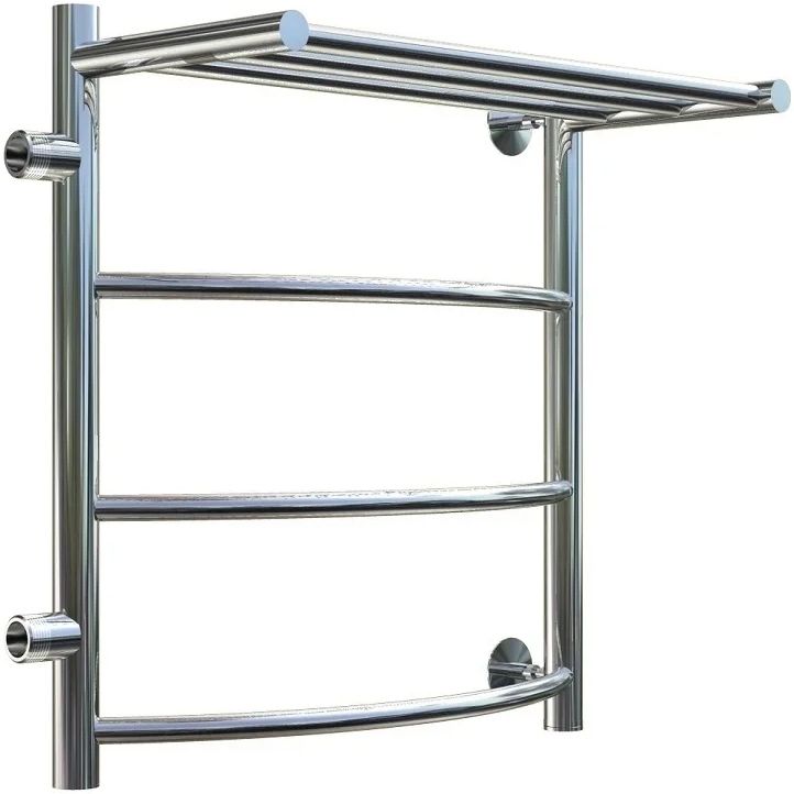 Водяной полотенцесушитель Тругор Приоритет 1 П ПМ 60x40 с полкой, цвет хром. Используется для просушки влажных вещей и полотенец, а также дополнительного обогрева помещения. Изготовлен из пищевой нержавеющей трубы марки AISI 304, которая отличается стойкостью к высоким температурам и образованию коррозии, выдерживает значительные перепады давления.