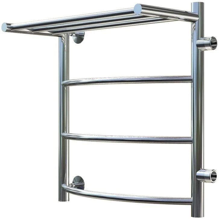 Водяной полотенцесушитель Тругор Приоритет 1 П ПМ 60x40 с полкой, цвет хром. Используется для просушки влажных вещей и полотенец, а также дополнительного обогрева помещения. Изготовлен из пищевой нержавеющей трубы марки AISI 304, которая отличается стойкостью к высоким температурам и образованию коррозии, выдерживает значительные перепады давления.