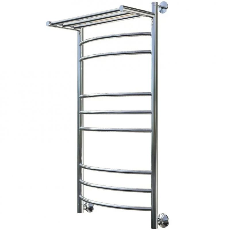 Водяной полотенцесушитель Тругор Приоритет 2 П НП 100x50 с полкой, цвет хром. Используется для просушки влажных вещей и полотенец, а также дополнительного обогрева помещения. Изготовлен из пищевой нержавеющей трубы марки AISI 304, которая отличается стойкостью к высоким температурам и образованию коррозии, выдерживает значительные перепады давления.