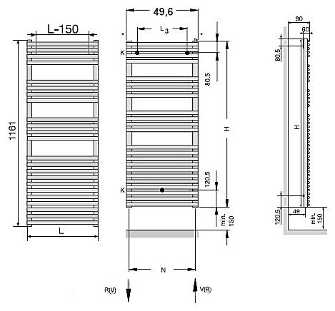 Водяной полотенцесушитель Zehnder Forma Inox LFI-120-050. Поставляется в исполнении из нержавеющей стали с матовой поверхностью, полностью готовым к монтажу, в комплекте с набором крепежа.