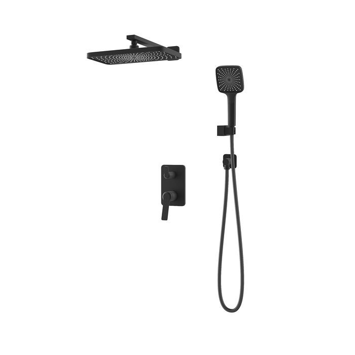Встраиваемая душевая система Parker в чёрном матовом цвете – практичная и стильная, её дизайн сочетает в себе трендовый минимализм форм и четкие грани. Готовый набор включает всё необходимое для создания уютного и функционального пространства: смеситель, верхняя лейка с кронштейном для тропического душа, большая ручная лейка с 3 режимами, душевой шланг 1,5 м и выход для подключения шланга с держателем для лейки.