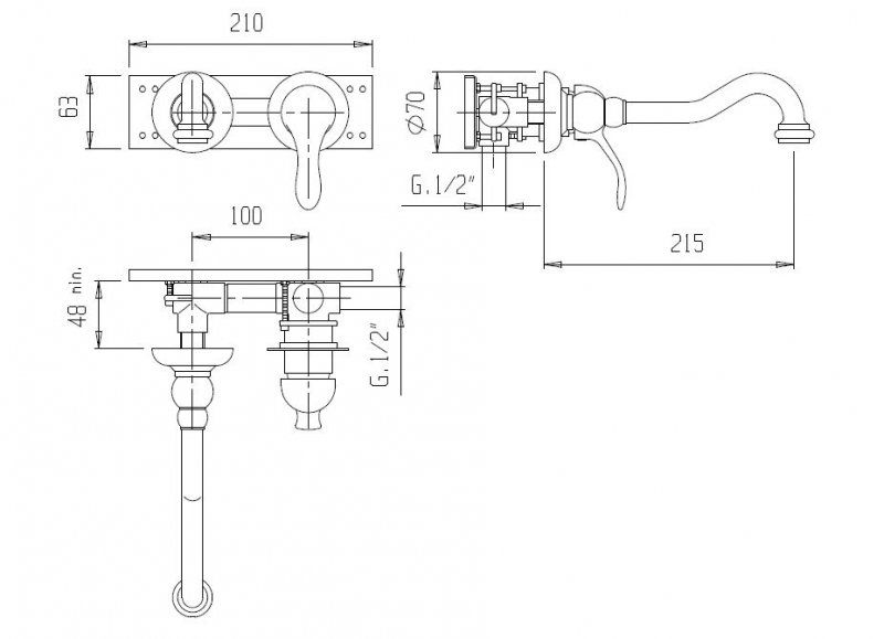 Тип подводки: внутренний (скрытый) монтаж 1/2"