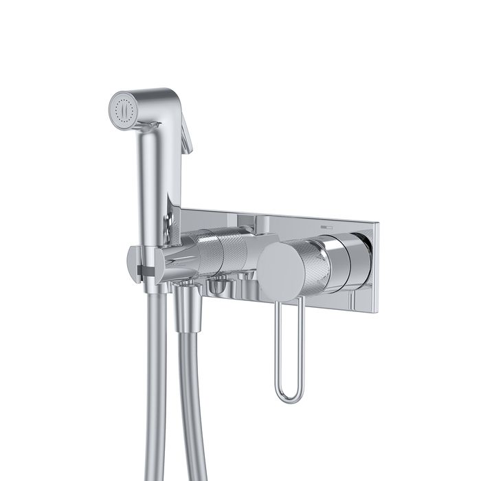 Смеситель с гигиеническим душем Duna – воплощение актуальных трендов в дизайне смесителей в безупречном исполнении: фрезеровка, изысканная ручка-петля, модные цвета и фактуры.