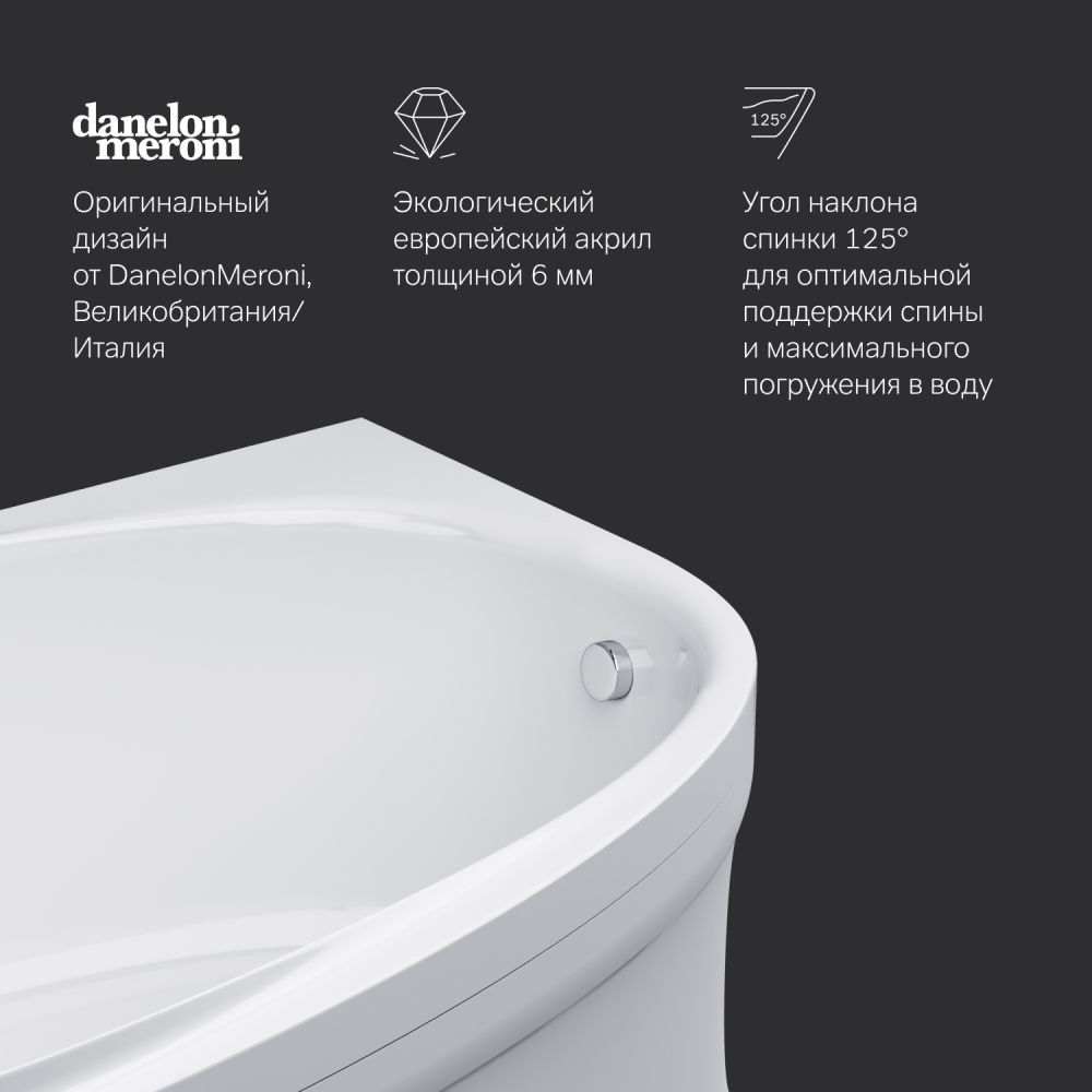 Одна из самых удобных ванн на рынке: угол наклона спинки 125° разработанный совместно с ведущими терапевтами обеспечивает оптимальную поддержку спины и максимальное погружение в воду.