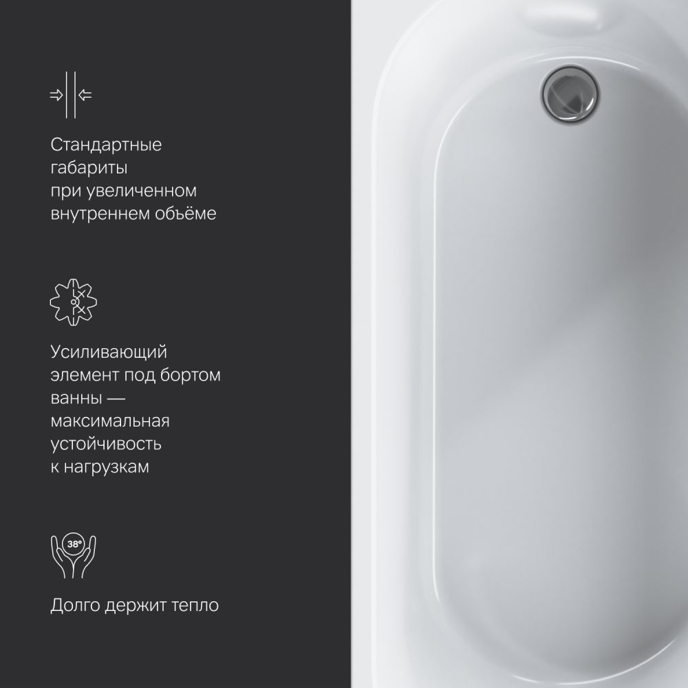 Компактная проекция 150х70 см позволяет вписать ванную даже в небольшое помещение. А универсальный дизайн подойдет как для современного так и для классического интерьера.