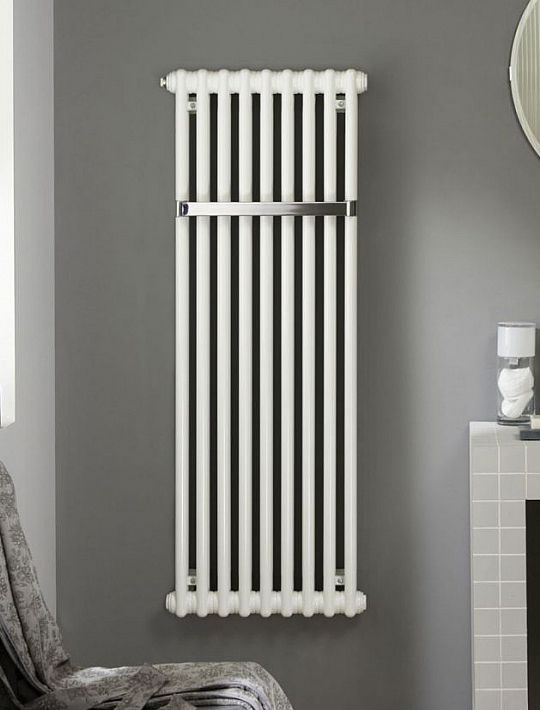 Стальной цельносварной дизайн-радиатор Zehnder Charleston Bar CPV 3150-12 с хромированным полотенцедержателем. Цвет - белый (RAL 9016). Мощность 2800 Вт. Масса 40.1 кг. Емкость 24 л. В комплект поставки входят: радиатор, полотенцедержатель, монтажный набор в цвет радиатора 4 х CVD 0 + BH.