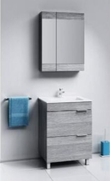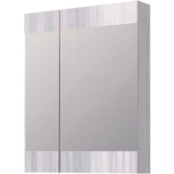 Подвесной зеркальный шкаф Aqwella Бриг 60 Седой дуб Br.04.06/Gray с серебряной амальгамой, с двумя распашными дверцами и с тремя стеклянными полками.