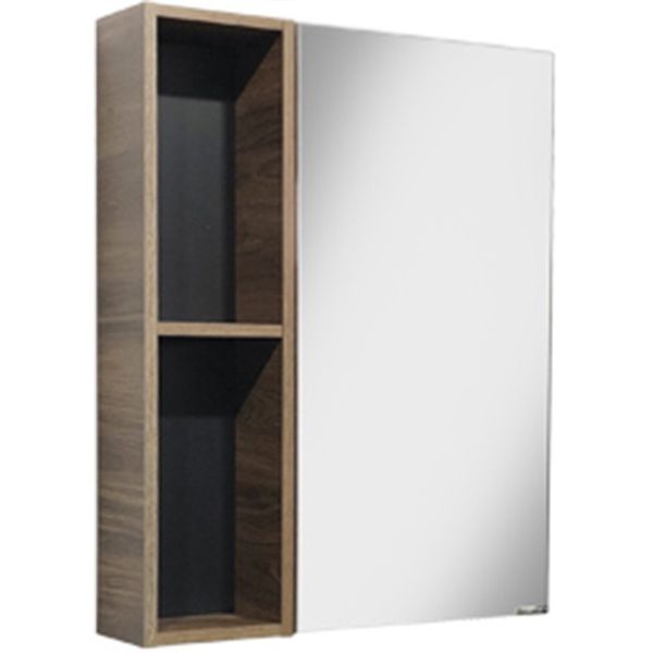 - За зеркальной створкой две горизонтальные полки, в пространстве открытого хранения - одна.