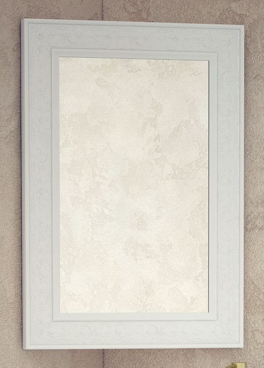 Угловое зеркало-шкаф. За дверью расположено 2 полки (включая дно). Фасадом является багетная рама с зеркалом. Зеркало защищено противоосколочной плёнкой. Зеркало-шкаф является универсальным, то есть перевернув его, возможно повесить шкаф как для правого, так и для левого открывания.