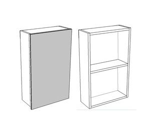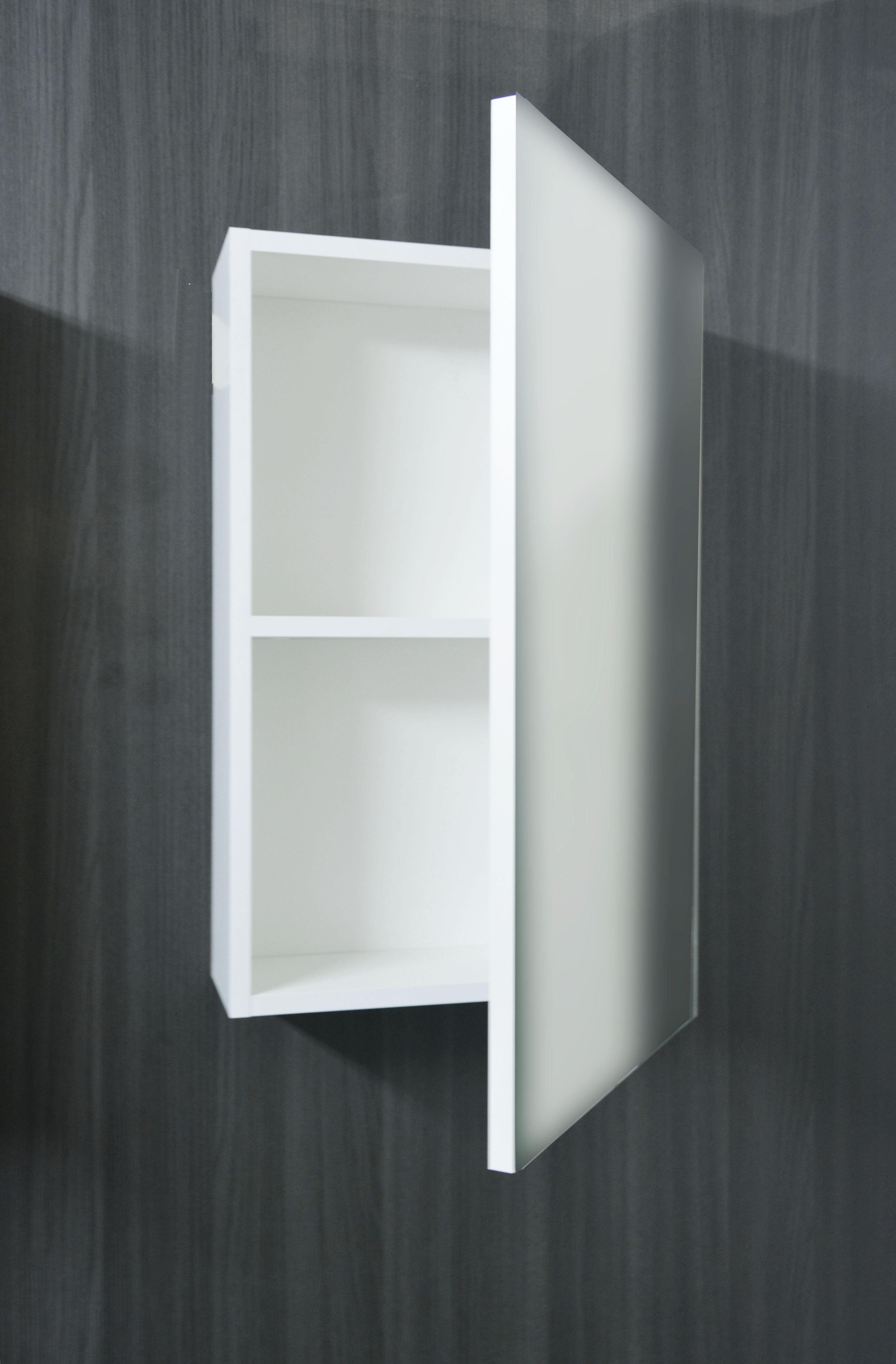 Зеркало-шкаф представляет собой шкаф с дверцей, на которую наклеено зеркало. Позади двери 2 полки. Петли на двери с доводчиками. Зеркало и дверь имеют свис снизу на 19,5 мм, за который дверь можно открыть.