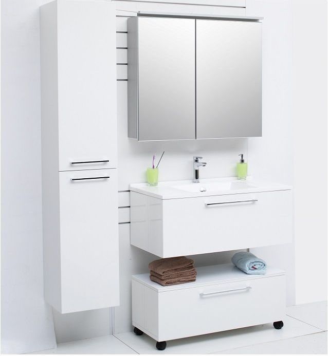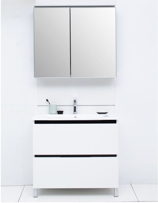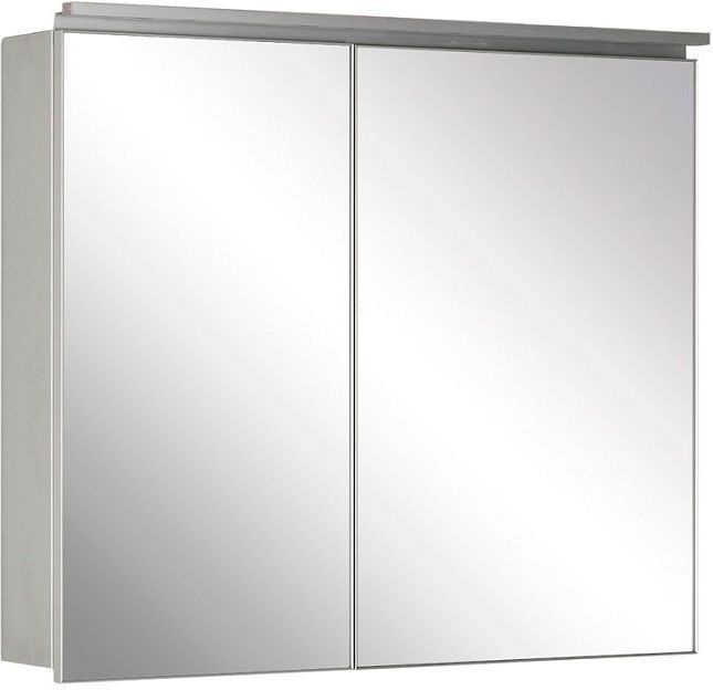 Зеркало-шкаф De Aqua 100 (серебро) в алюминиевом корпусе содержит большую зону хранения за двумя распашными дверцами. Ширина - 100 см, полочки внутри сделаны из стекла.