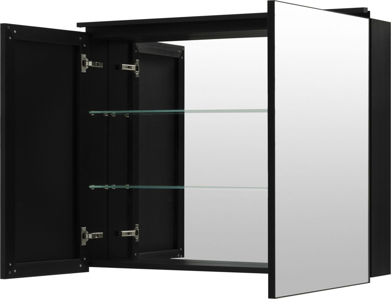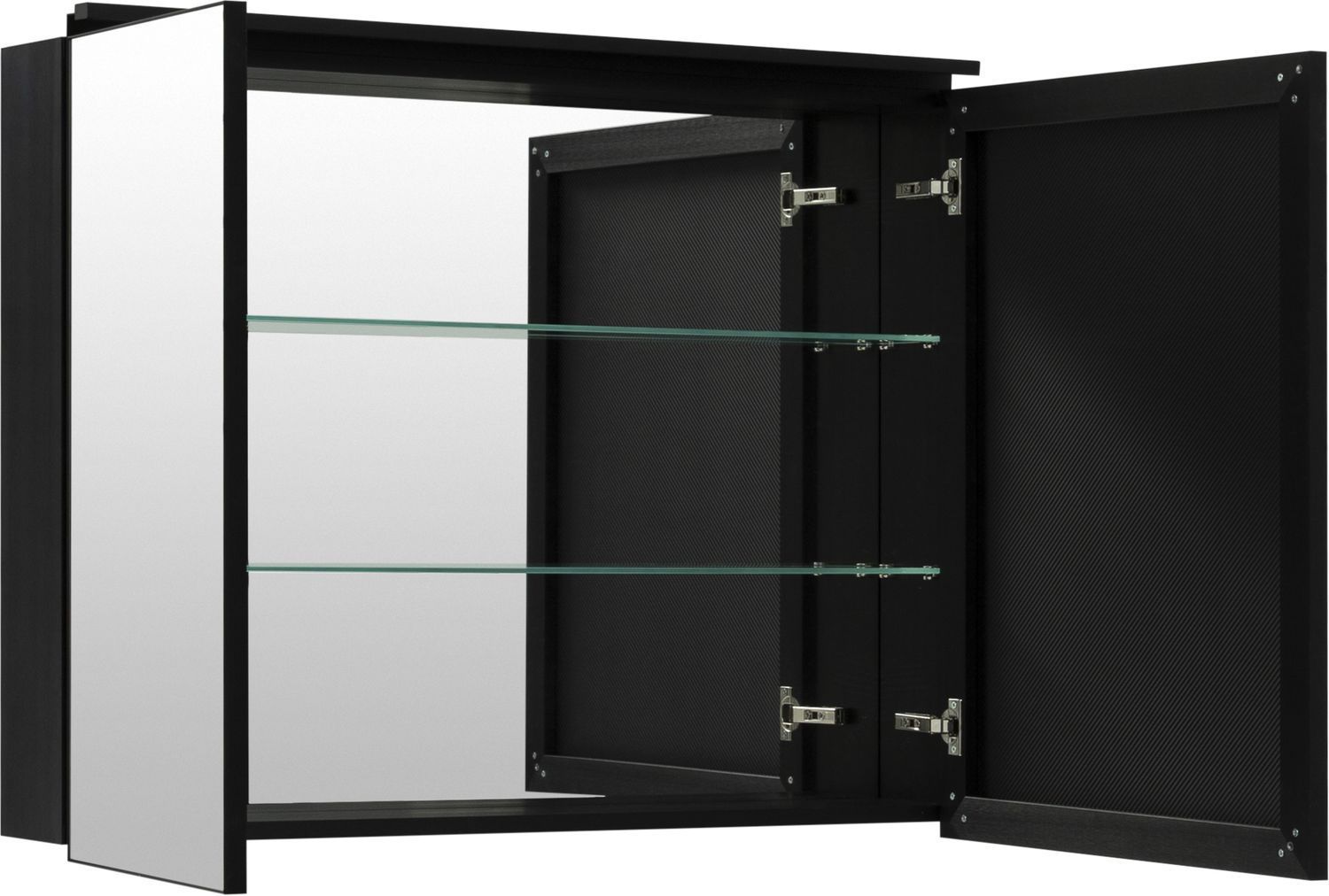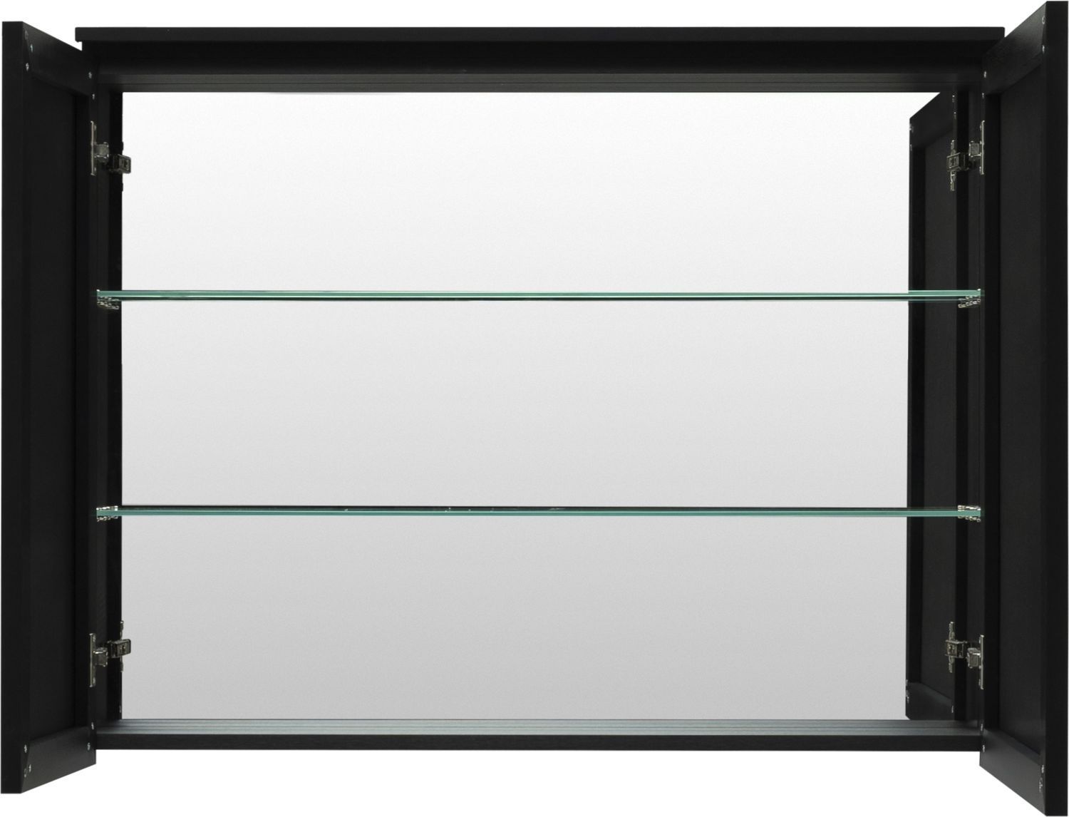 Распашные дверцы оснащаются доводчиками для плавного и бесшумного закрывания. За ними располагаются две стеклянные полки, подходящие для хранения гигиенических средств и косметики. Для ухода за зеркальной поверхностью рекомендуется применять специальные составы без абразивных частиц и мягкую ветошь. Модель подвесная и крепится к стене. Габариты —1000х140х765 мм.