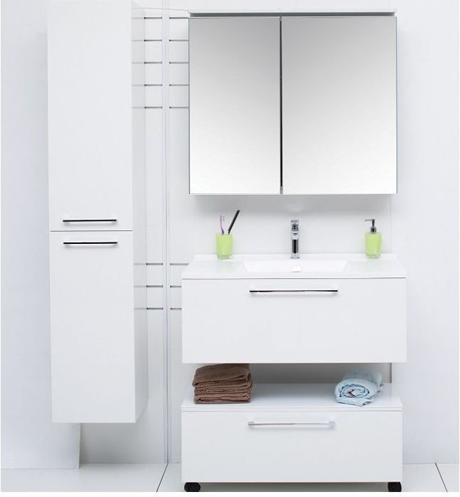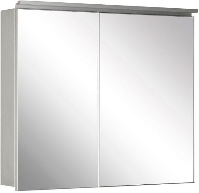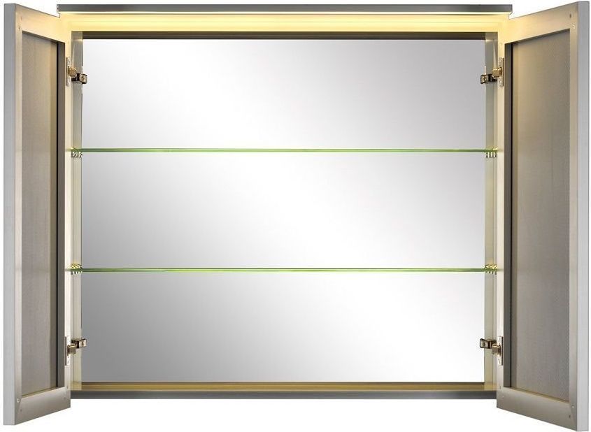 Зеркало-шкаф De Aqua 90 (серебро) в алюминиевом корпусе содержит большую зону хранения за двумя распашными дверцами. Ширина - 90 см, полочки внутри сделаны из стекла.