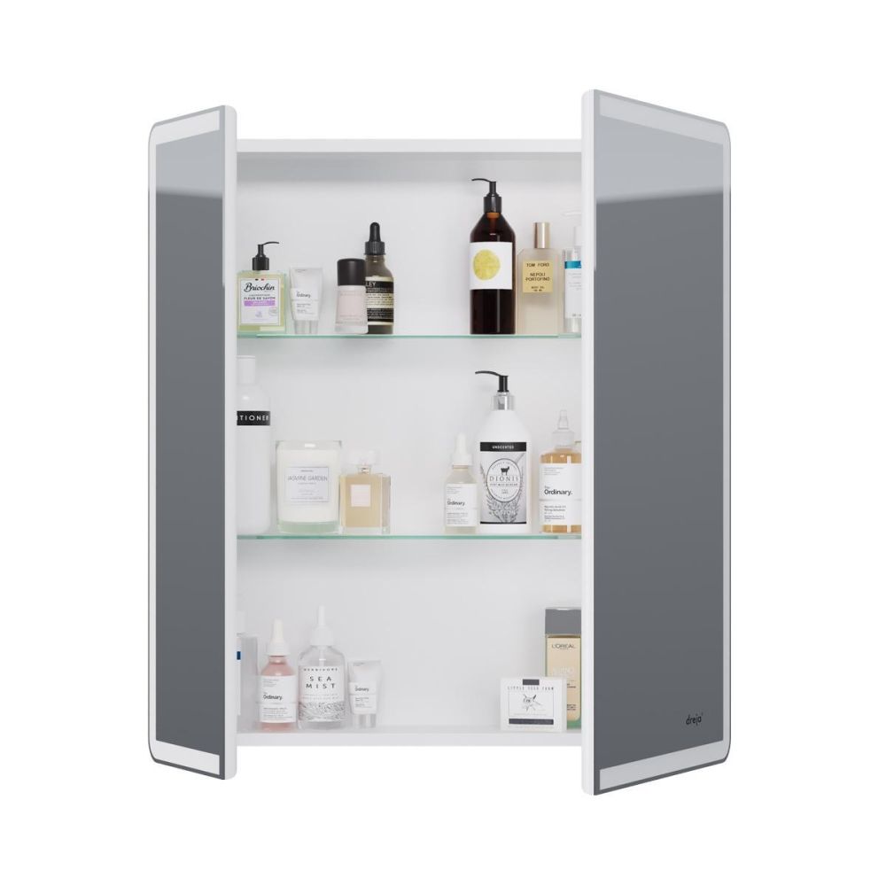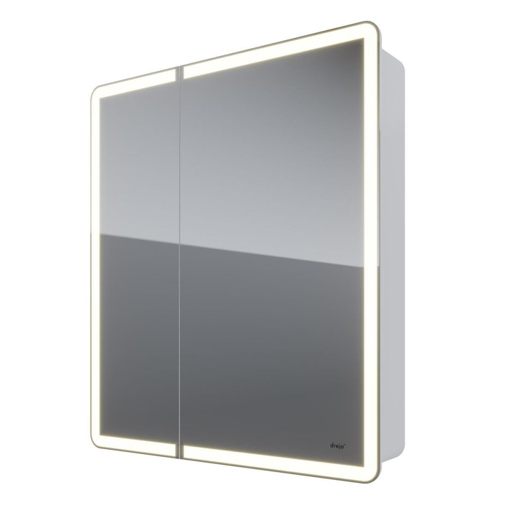 Зеркальный шкаф Dreja Point 70 см, белый. Артикул: 99.9033. Гарантийный срок: 2 года. Страна производства: Россия. Монтаж: подвесной . Компоновка: 2 дверцы, 2 стеклянные полки. Фурнитура: Blum. Подсветка: да. Материал: ЛДСП/МДФ.