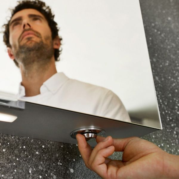 - Трехрежимная яркость освещения регулируется с помощью интуитивно простого управления переключателем, расположенного под корпусом зеркального шкафа.