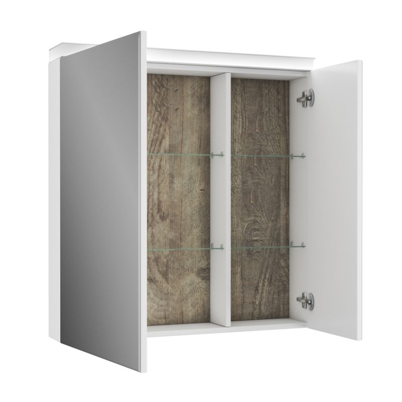 - Шкаф оснащен двумя дверками с двойным зеркалом на петлях с доводчиками для плавного и бесшумного открытия и закрытия.