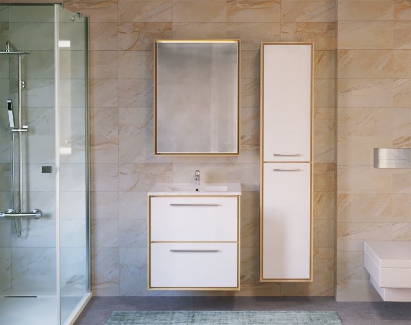 Подвесной зеркальный шкаф Raval Frame 60 Fra.03.60/W с распашной дверцей, подсветкой и розеткой. Предназначен для использования в ванных комнатах с повышенной влажностью. Дверца оснащена доводчиками с функцией плавного закрывания. Влагостойкие и экологичные материалы, качественная работа фурнитуры, ударопрочность, приятные тактильные ощущения.