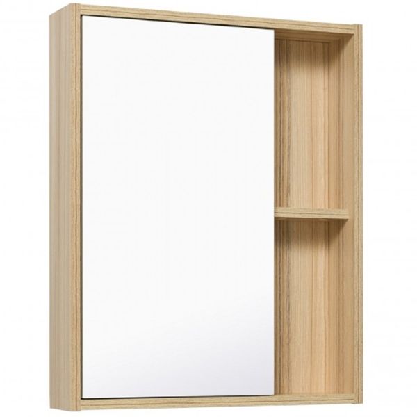 - Зеркальный шкаф с одной распашной дверкой и открытыми полками - слева или справа зависит от установки.