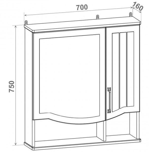 - Внутри шкафа два отделения - по одной встроенной полке в каждом.