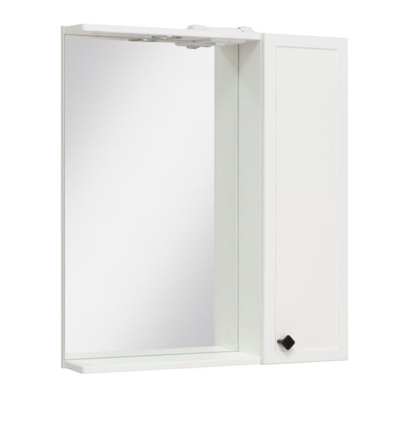 Зеркало настенное со шкафчиком и полкой RUNO РИМИНИ - выполнено в стиле прованс. Тепло и уют домашнего очага, очарование старины и элегантность, а также продуманный функционал помогут украсить интерьер любой ванной комнаты. Зеркало для ванной со шкафчиком РИМИНИ представляет собой зеркало настенное (слева) и шкаф в ванную с одной дверцей (справа). В шкафу имеются две внутренние полки. Шкаф для ванной оборудован одним врезным светодиодным светильником 220В и розеткой с выключателем. Шкафчик в ванную комплектуется петлями со встроенным доводчиком и ручкой. Мебель для ванной RUNO - красота и практичность в мелочах!