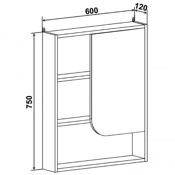 - За дверкой две встроенные полки частично открытые с левой стороны.