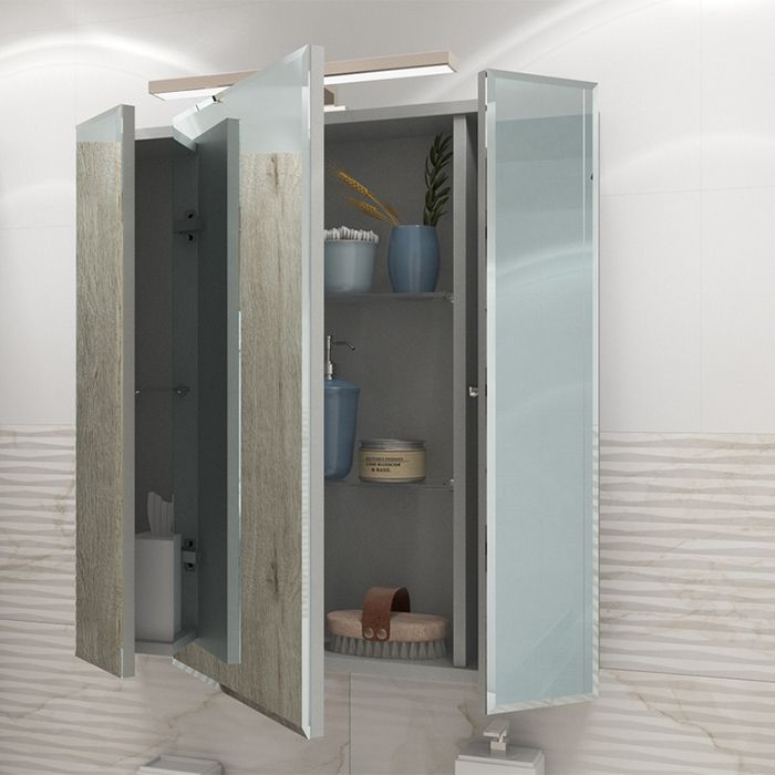 Зеркальный шкаф служит функциональной зоной хранения. Позволит держать все необходимые косметические средства в идеальном порядке. Идеально подходит для интерьера в современном стиле.