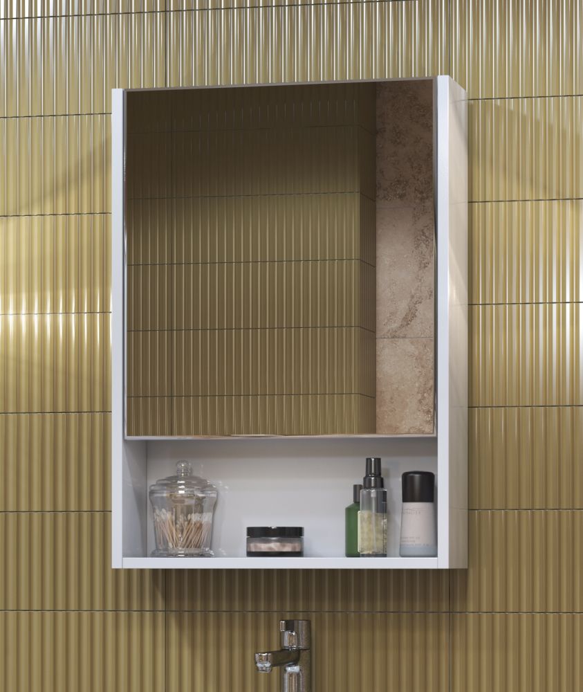 Зеркало с фацетом. 1 дверца; 3 полки ЛДСП.