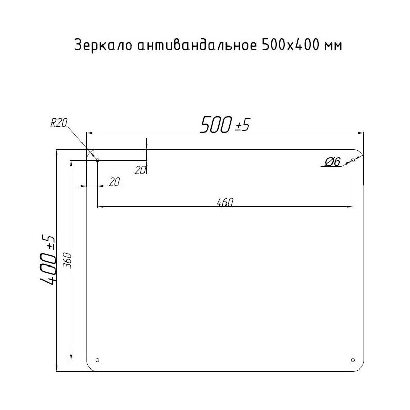 Зеркало антивандальное 500х400 мм. Материал: нержавеющая сталь AISI 304. Толщина стали: 1,5 мм. Без рамки. Без регулировки угла наклона. У зеркала отсутствуют крепления в комплекте, вешать его можно как в горизонтальном, так и в вертикальном положении.