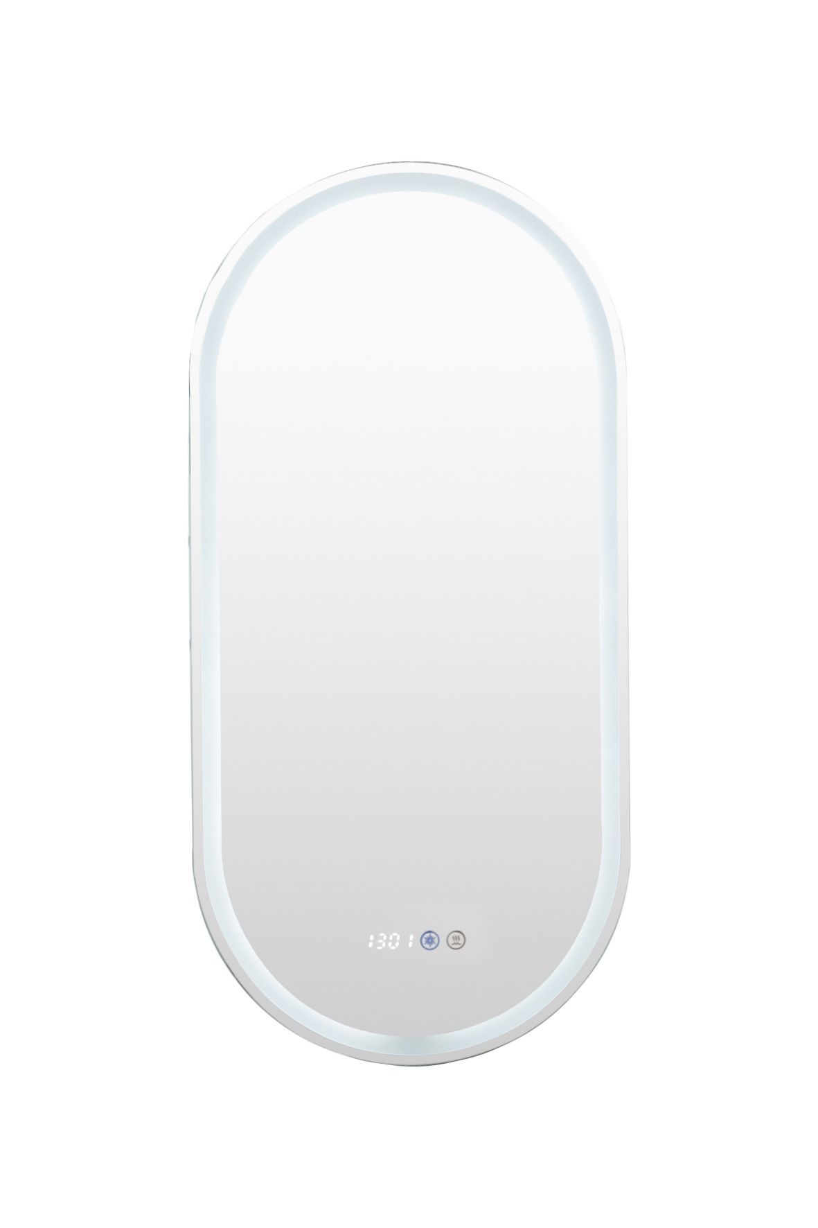 <h3>Зеркало с часами и подсветкой Aquanet Монте 45 белый матовый</h3><br><strong>Ключевые особенности</strong>:<ul><li>LED подсветка по периметру;</li><li>Часы в нижней части зеркала;</li><li>Функция антизапотевания зеркала;</li><li>Сенсорное управление;</li><li>Вертикальное или горизонтальное размещение на стене;</li><li>Отсутствие рамы;</li><li>Ультратонкий дизайн.</li></ul><p style="text-align: justify;">Зеркало Aquanet «Монте» 45 в овальном корпусе белого матового цвета идеально подойдет для интерьеров скандинавском стиле, модерн или хай-тек. Моделью можно управлять буквально парой касаний.<br><br>Используя сенсорные кнопки, активируют светодиодную подсветку, настраивают часы, которые отображаются в нижней части передней панели. Устройство дополнено функцией «антизапотевание». Это значит, что воспользоваться им можно будет даже после очень горячей ванны — поверхность не помутнеет и не понадобится ее вытирать.<br><br>Отсутствие рамки и толщина всего 20 мм создают ощущение, что зеркало парит в воздухе. Его можно разместить в ванной или спальне, в прихожей или гардеробной. При необходимости установка проводится как по вертикали, так и по горизонтали. В зависимости от этого выбирается место крепления крюка и монтаж дюбеля.</p>