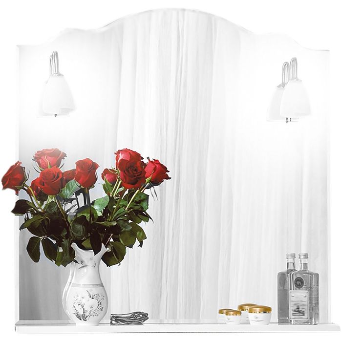 Зеркало Бриклаер Анна 90 с открытой нижней полкой, со светильниками в форме цветочков.