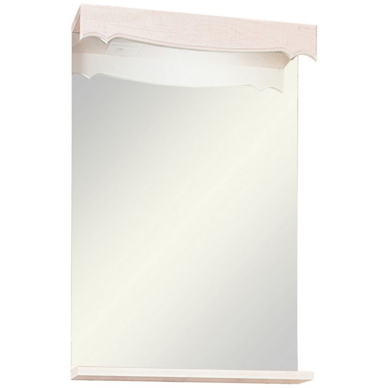 Зеркало Бриклаер Кантри 45 с полочкой выполнено в стилистике прованс, сочетает в себе элегантность и практичность. В верхней части корпуса расположен светильник с выключателем и розеткой.