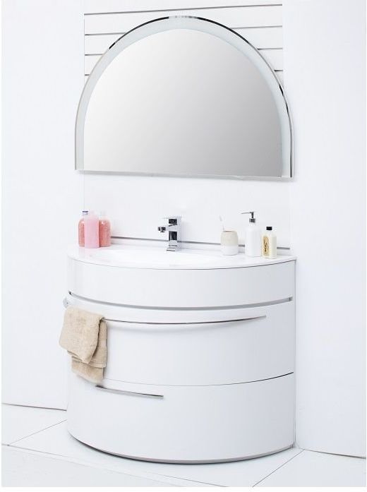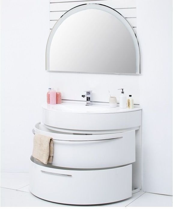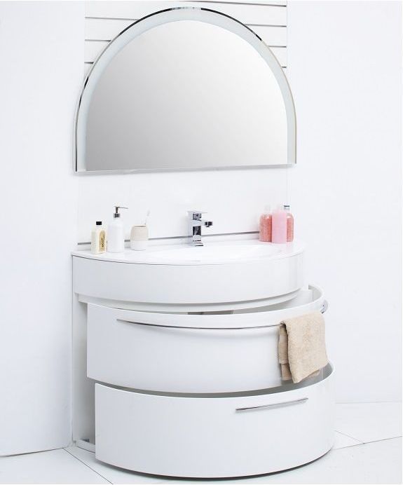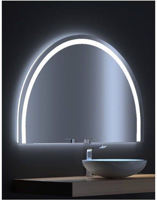 Зеркало De Aqua Эскалада 117 похоже на заходящее солнце. Половина зеркального полотна выглядит очень эффектно и является ярким отражением всей концепции коллекции, где половинки создали своего рода новый подход к дизайну помещения. LED-подсветка, прорывающаяся через края изделия и сквозь диковинный узор, вязью пущенный по верхней части зеркального полотна, придает некую фантасмагоричность модели.