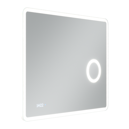 Зеркало для ванной комнаты SANCOS Arcadia 1.0 900х700, LED подсветка; диммируемый сенсорный выключатель; встроенное увеличительное зеркало (линза) с 3-х кратным увеличением, дополнительная подсветка вокруг линзы; встроенные часы,пластиковый светопропускающий короб, арт.AR1.900