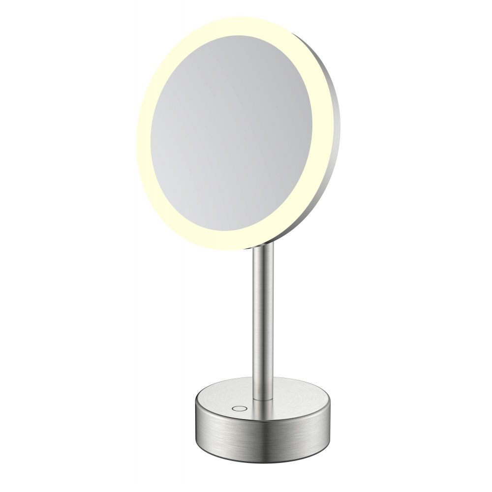 Зеркало настольное с увеличением 5х JAVA S-M551L, сатин. Имеет светодиодную подсветку, сенсорное включение. Идеально для нанесения макияжа, надевания контактных линз, комфортного бритья. Подвижные элементы конструкции позволяют регулировать положение зеркала.