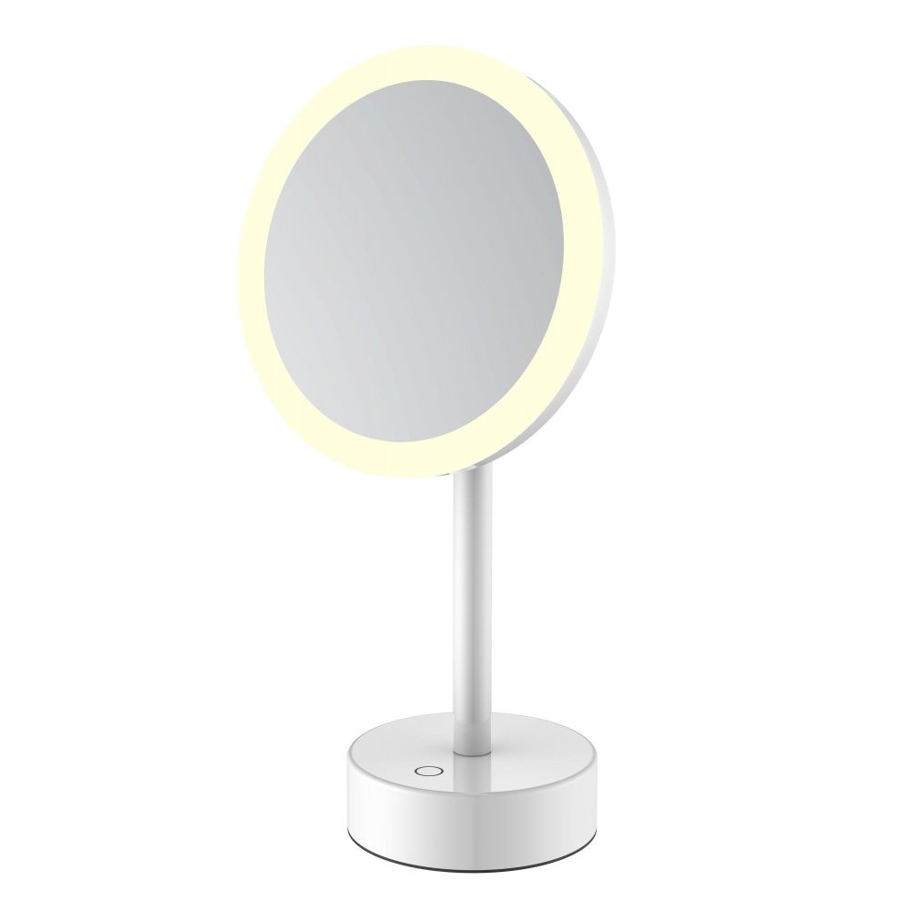 Зеркало настольное с увеличением 5х JAVA S-M551W, белый. Имеет светодиодную подсветку, сенсорное включение. Идеально для нанесения макияжа, надевания контактных линз, комфортного бритья. Подвижные элементы конструкции позволяют регулировать положение зеркала.