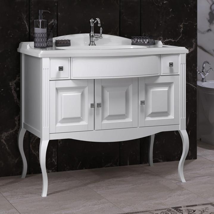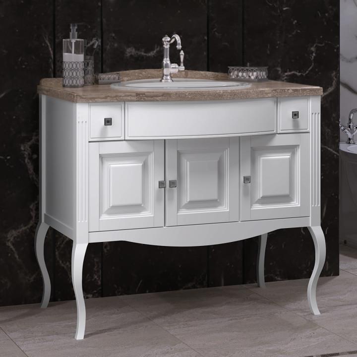 На тумбу из коллекции ЛАУРА можно установить мраморную столешницу с врезной накладной керамической раковиной (для размера 100 см) или раковину из литого мрамора.