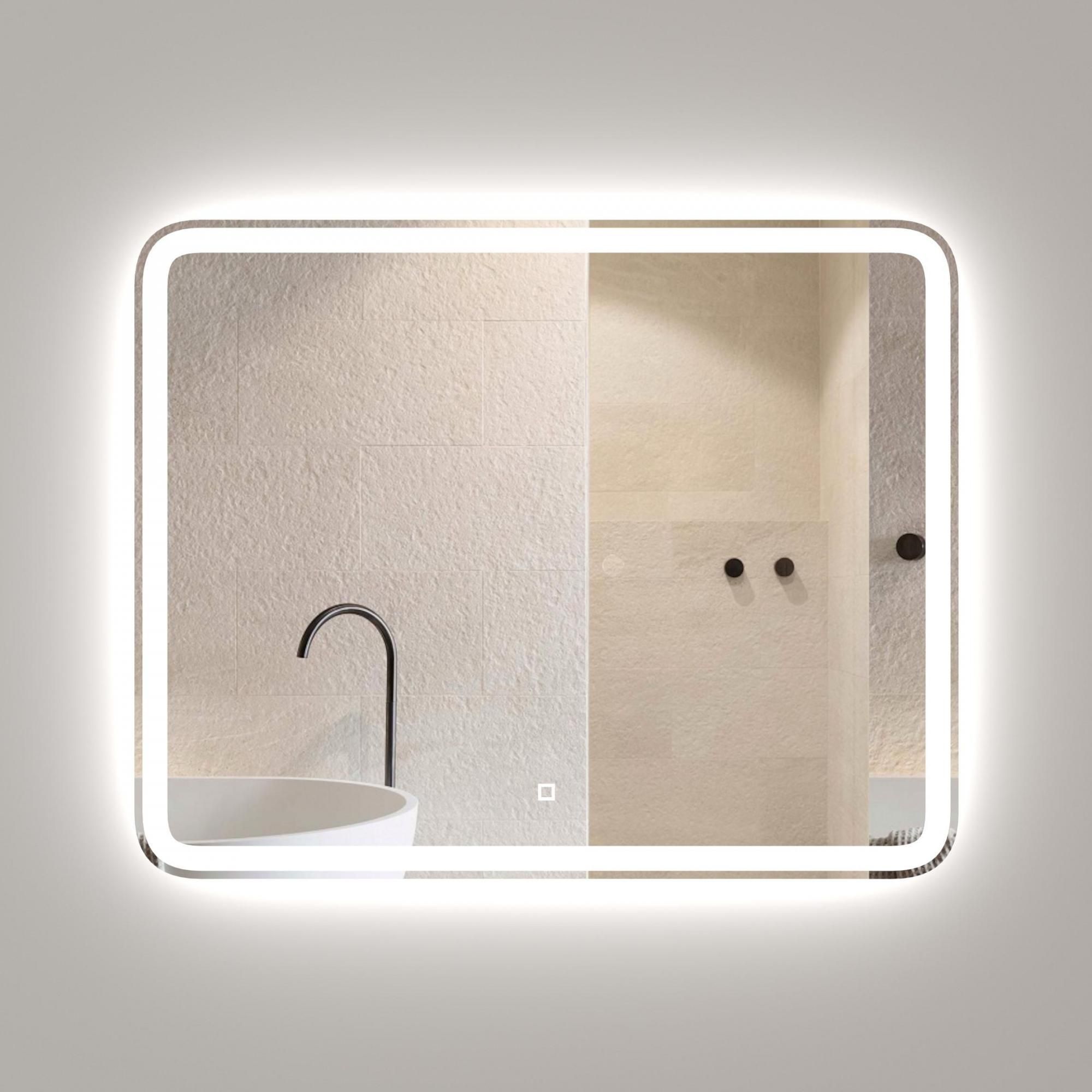 Яркость LED-подсветки регулируется при помощи встроенного диммера и сенсорной кнопки на поверхности зеркала.