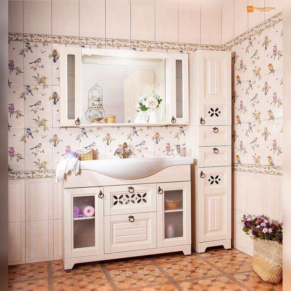 Комплект мебели Бриклаер КАНТРИ состоит из: Зеркало КАНТРИ 85 см, бежевый дуб прованс, Шкаф навесной Бриклаер КАНТРИ 20 см, бежевый дуб прованс 2 шт..