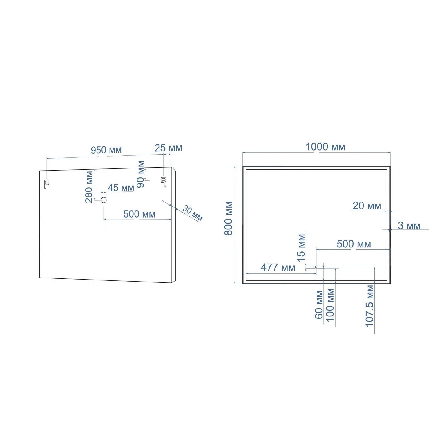 По периметру зеркала профиль из полированого алюминия, задняя часть корпуса закрыта