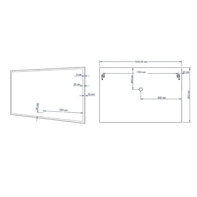 По периметру зеркала профиль из полированого алюминия, задняя часть корпуса закрыта