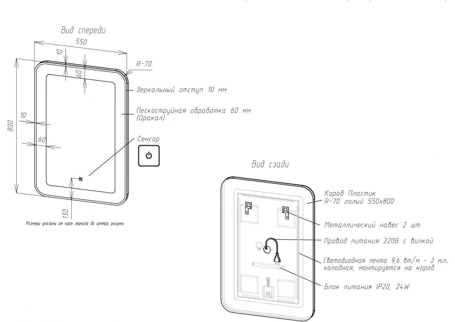 Корпус из УПС-пластика, зеркальный отступ по периметру