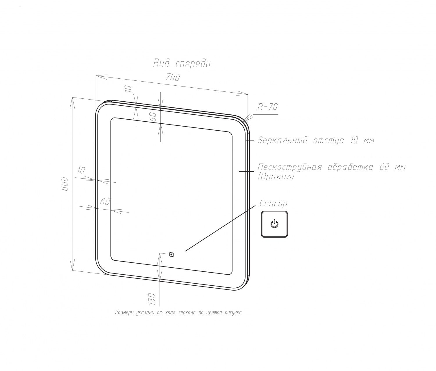 Корпус из УПС-пластика, зеркальный отступ по периметру