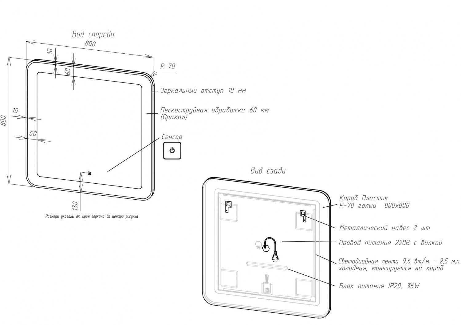 Корпус из УПС-пластика, зеркальный отступ по периметру