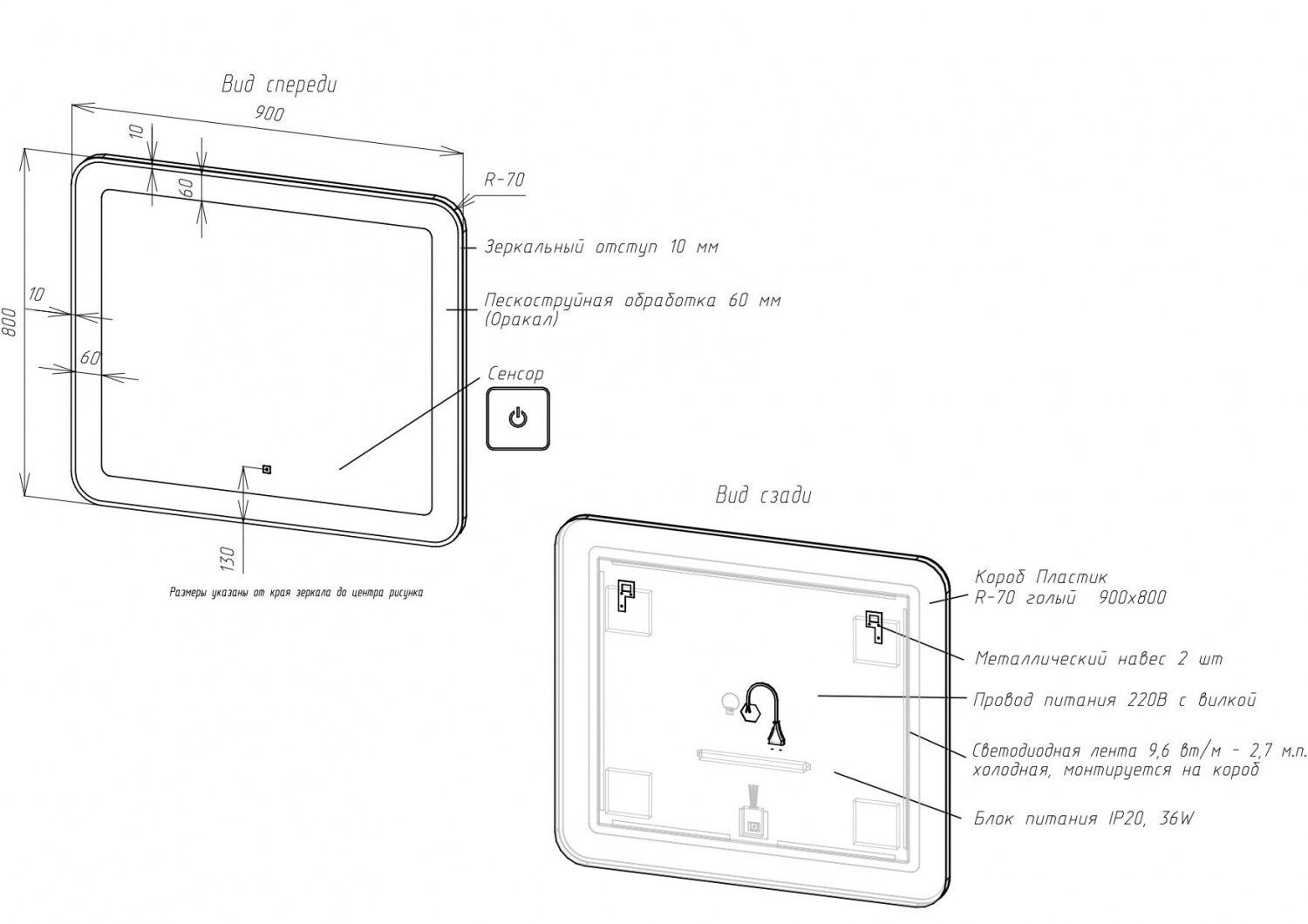 Корпус из УПС-пластика, зеркальный отступ по периметру