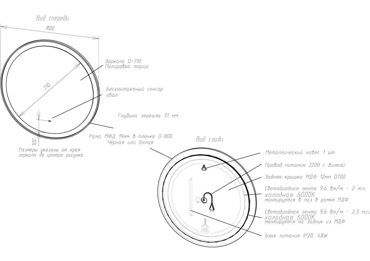 МДФ,пленка ПВХ, ореольная подсветка.Управление подсветкой "на взмах руки".Температура подсветки 6000К